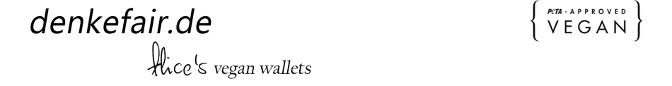 Zum Wohl der Tiere: bei meinen Produkten verzichte ich vollständig auf tierische Materialien. Nicht zuletzt deswegen wurden wohl schon Tausende von den ökofairveganen denkefair-Geldbörsen überzeugt.