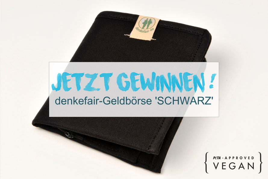 Der Gewinn sind die abgebildeten denkefair-Geldbörsen 'NATUR//BLAU' und 'SCHWARZ' inklusive Versand nach Deutschland,